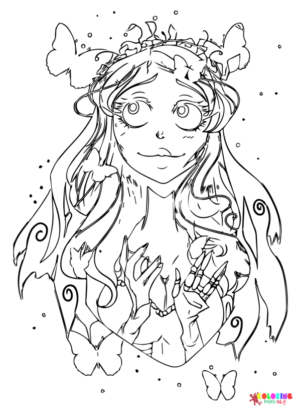 Dibujos para colorear de la novia cadaver, para descargar e imprimir para niños y adultos.
