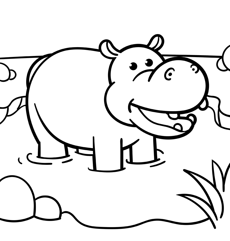 Hipopótamo para colorear, para descargar e imprimir para niños y adultos.