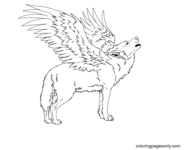 Lobo con alas para colorear